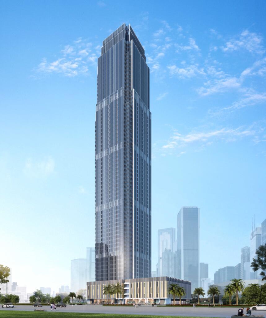 項目位于防城港市江山大道與金花茶大道交匯處,是一棟大型商業(yè)、辦公、酒店綜合體,總建筑面積超過17萬㎡,建筑高度達(dá)到271米,地上70層,是防城港市最高樓。